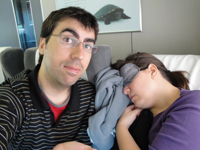 1. Jajajaja!!!! La nena clapant!!!!! Quina sorpresa????? Vols dir que ella també dorm poc al viatge… ???? Un dubte… ara és moda posar els dits en victòria (uns professionals fotogràfics com vosaltres???)… una mica més d’originalitat homaaaaaaaaaaa!!! I el jersei a les espatlles a tot arreu niñátaaaaaaaaaa???? jijijiji!!!!!
