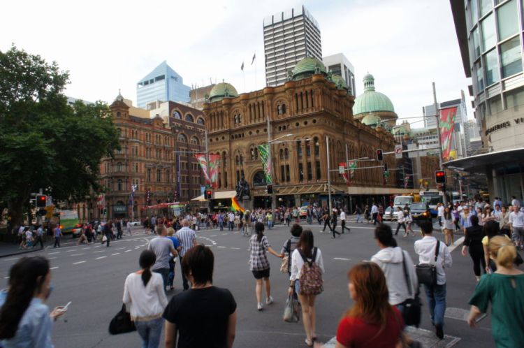 Llegamos a Sydney en unas 3 horas. Nos encontramos en un país diferente y una ciudad diferente, pero con mucho cansancio acumulado. Sin embargo, hacemos un buen paseo por sus calles. Caminamos desde la zona de nuestro hotel The York (York St., en la zona de The Rocks) hasta Central Station.