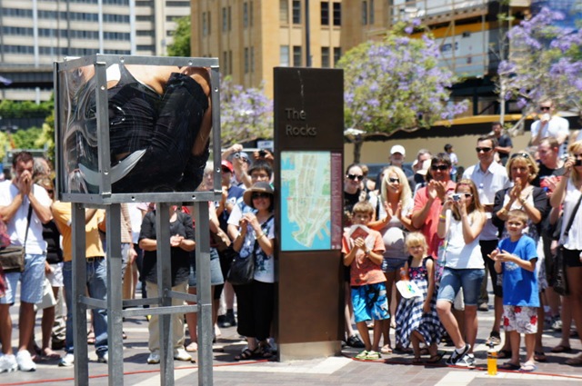 Visitamos la zona de The Rocks, donde hacen un mercado el fin de semana. Muchas paradas y turistas, y un sol de justicia. Paseamos sin parar y nos entretenemos con espectáculos en la calle.