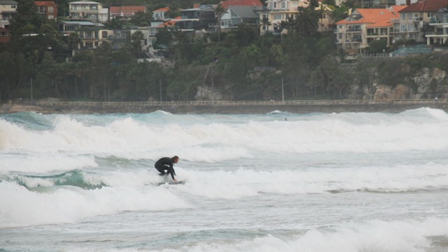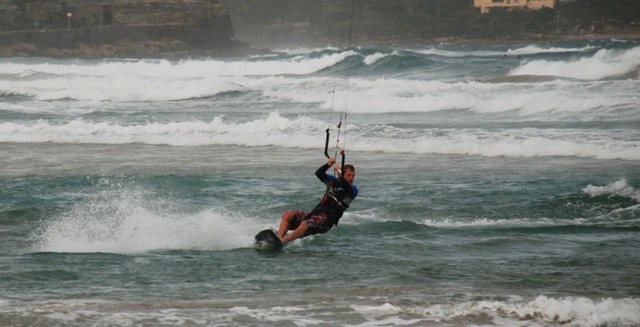 Más tarde visitamos otra playa. Tenemos que coger el ferry para llegar a Manly Beach. Decidimos comprar una tarjeta multiviajes para poder movernos en bus, tren o ferry. Es genial. Pero cuando estamos en la playa, sopla mucho viento y ya no quedan bañistas. Aún así encontramos surferos y gente practicando kite-surf.