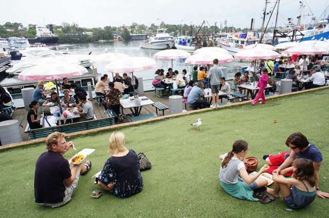 Después cogemos un bus para visitar algo más, y llegamos hasta el Market Fish. En el puerto mismo, encontramos unas puestos donde venden pescado y marisco fresco de todo tipo (las ostras son las reinas del mercado!). Allí mismo hay restaurantes donde los cocinan de mil formas y puedes sentarte en una de las muchísimas mesas que tienen al lado del mar. Nosotros queremos algo más de tranquilidad y con la compra bajo el brazo caminamos hasta el Wentworth Park. Allí, sentados en un banco y rodeados de familias y grupos haciendo como nosotros o practicando deporte, comemos estupendamente!