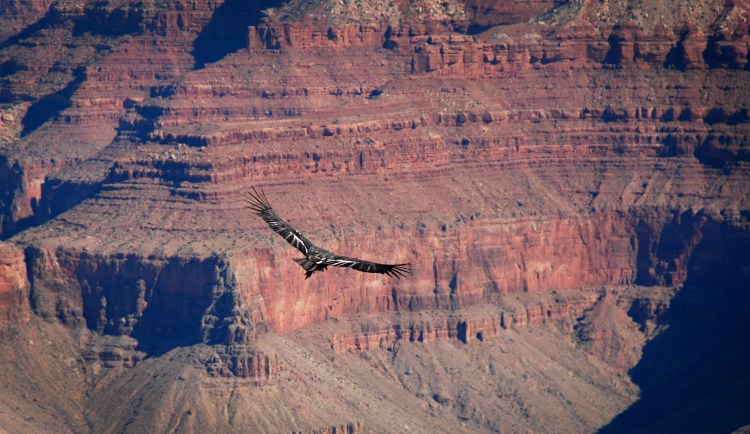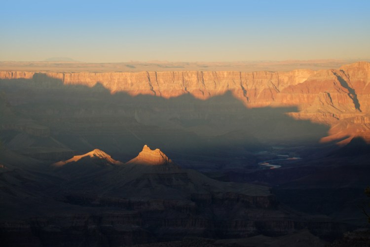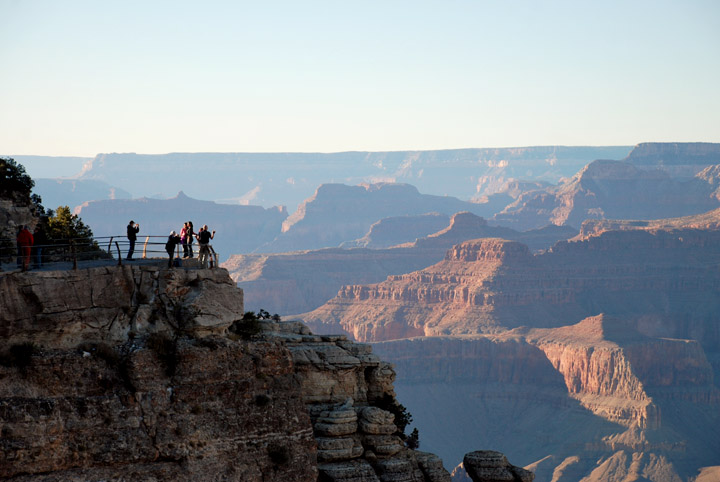 Todo el Grand Canyon está en continuo proceso de cambio, incluso el color de la roca se vuelve diferente a medida que avanza el día. Del blanco del mediodía evoluciona a los tonos rojos de la tarde. Es en este momento cuando empieza a esconderse el sol, que el Cañón aún supera su denominación de Maravilla Natural.