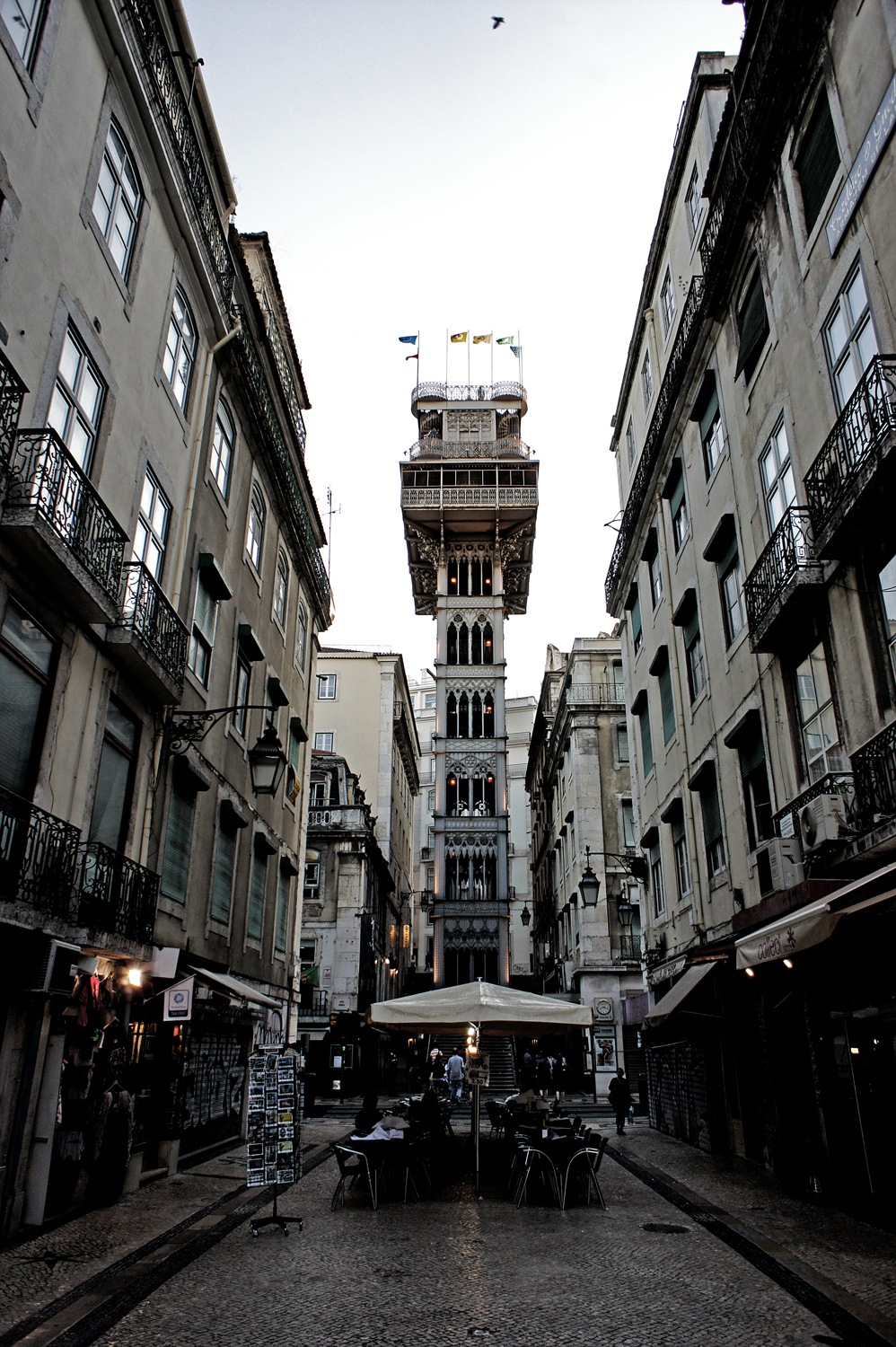 Podem tenir una bona panoràmica des de l’elevador de Santa Justa, un ascensor neogòtic de ferro dissenyat per Raoul Mesnier, deixeble d’Eiffel, tot i que molta gent creu erròniament que és obra del segon. Ens evita una bona caminada, ja que a més de pujar-nos en ascensor per contemplar les vistes, comunica amb la part alta de la ciutat. Trobem un petit cafè al seu mirador, per si volem fer una petita pausa mentre fem un beure…