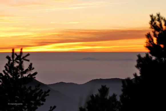 Finalment, ens trobem baixada la barrera que hi ha a l’ últim tram de la carretera. Allà si que hi ha uns quants centímetres de neu, i sense un bon 4×4 o unes cadenes ens és impossible continuar. Però no ens fa res, una capa blanca ens envolta i recordem que hem complert el nostre propòsit. A més, per arrodonir el dia, el cel ens regala una d’aquelles meravelloses postes de sol. Ens quedem fins que marxa pràcticament el darrer raig de llum. Després toca baixar per aquella carretereta estreta gairebé a les fosques, però ho fem amb un gran somriure a la cara. Som conscients que no fan falta moltes coses per ser feliç…