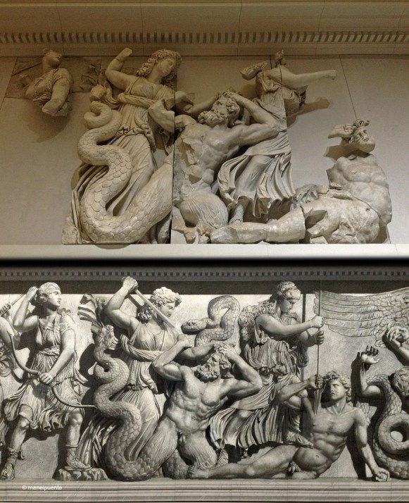 Construido entre los años 1.910 y 1.930, el Pergamonmuseum es conocido sobre todo por albergar enormes réplicas de imponentes conjuntos arquitectónicos. El ejemplo más impactante es, sin duda, el Altar de Pérgamo (170 aC). Su friso escultórico se encuentra entre las obras maestras del arte helenístico y muestra la llamada Gigantomaquia, la guerra entre los dioses y los gigantes.
