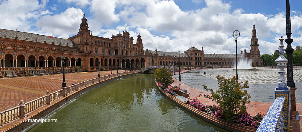 Para mi la Plaza de España, que por cierto salió en unos episodios de Star Wars, me resulta una de las plazas mas bonitas que he visto, es alucinante.