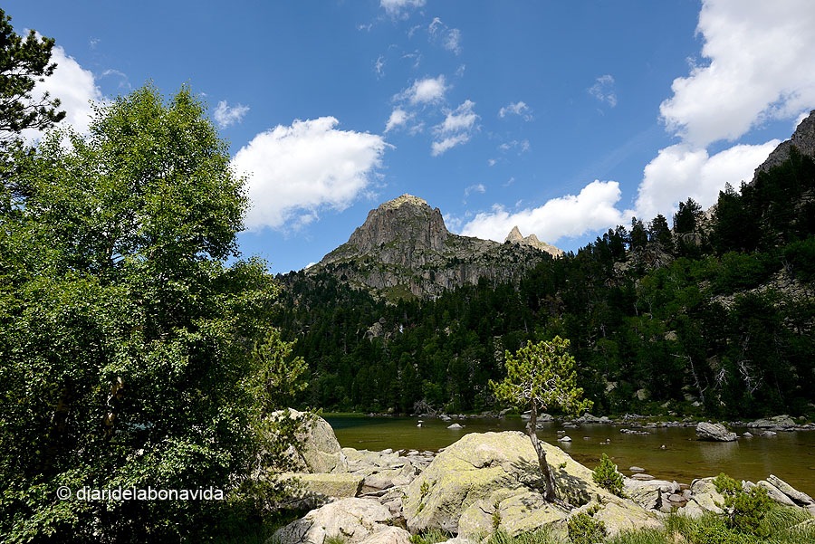 La primera imatge que veus de l’Estany és impressionant. És el típic plano del llac amb el pic dels Encantats darrera. Tornem a dir que ens vam trobar moltíssima gent, però com sempre passa en aquests espais naturals tan grans, tard o d’hora trobes el teu racó de pau i tranquil·litat.
