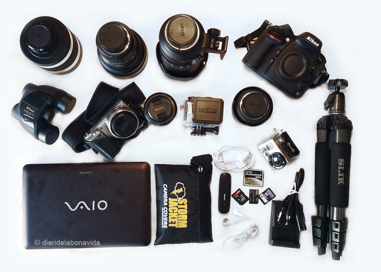 Y aquí no se ven todos los cargadores, y más objetos varios que llevamos… No está mal!