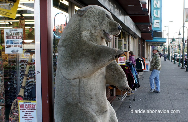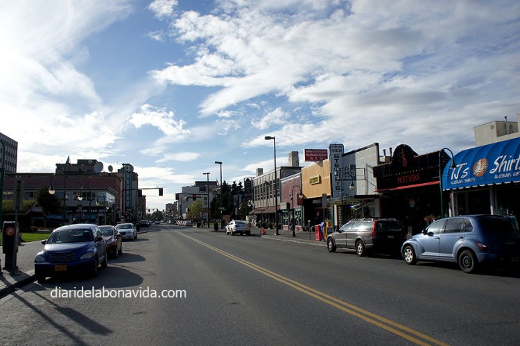 Una vez en Anchorage y después de hacer los trámites correspondientes de inmigración, cogemos un taxi y nos vamos hacia nuestro Bed&Breakfast (Artic Fox Inn). Es sencillito pero es una casa pequeña, con 5 habitaciones, y una zona común para tomar té y café a cualquier hora. Salimos a dar una vuelta y enseguida hemos visto la ciudad de Anchorage. No es muy grande y tampoco tiene nada especial para ver ni destacar. Típicas avenidas anchas americanas, parquímetros por todas partes y un Downtown que es el único lugar donde encontrar un poco de ambiente. Lo que sí nos gusta es el tiempo que hace. Un sol brillante nos acompaña durante nuestro paseo. Y apenas hace un par de días se quedaron sin luz por culpa de unas tormentas y vientos huracanados. Qué suerte hemos tenido!