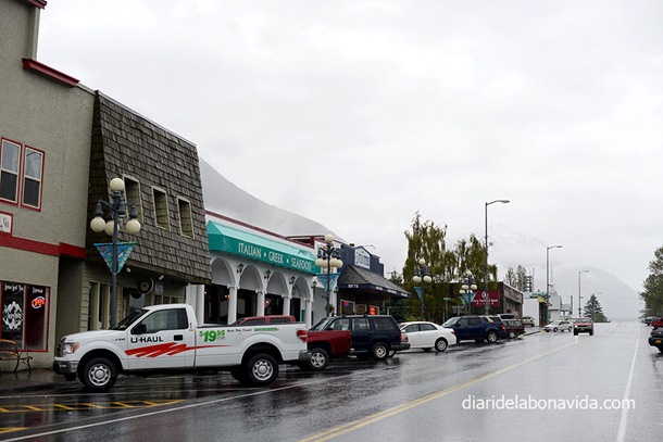 Lo mejor es decidirlo mientras hacemos un buen desayuno. Hacemos un paseo bajo el paraguas y vamos a la cafetería Sean Bean, en el centro de la ciudad. Tienen un ambiente agradable y wifi. Una compañera de mesa nos cuenta que está llegando una buena tormenta a la zona, y cuando le explicamos que queríamos salir en barco se rie y nos suelta la típica frase de: «Esto es Alaska, chicos!». Total, que no navegaremos.