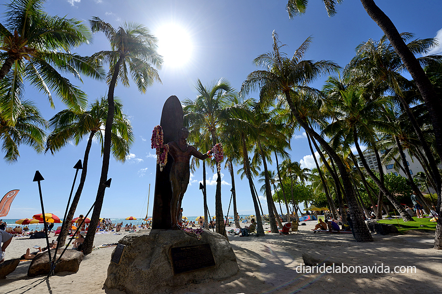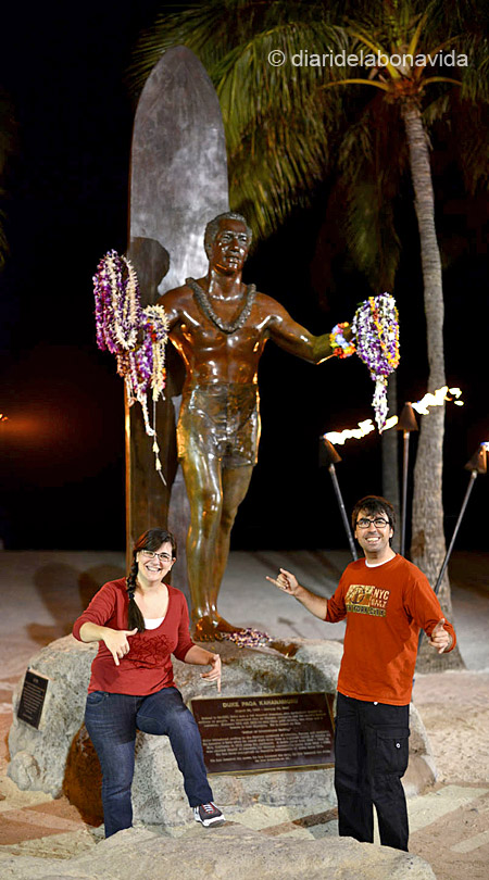 No podem anar a dormir sense fer-nos una foto davant de l’escultura més coneguda del lloc: l’estàtua de Duke Kahanamoku “The Big Kahuna”, el considerat inventor i pare del surf modern.