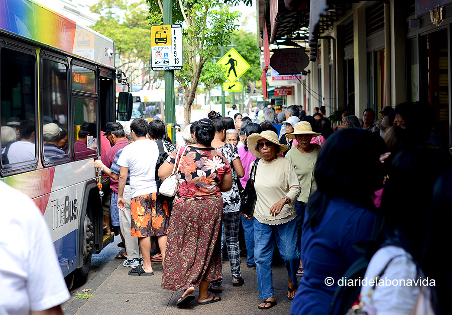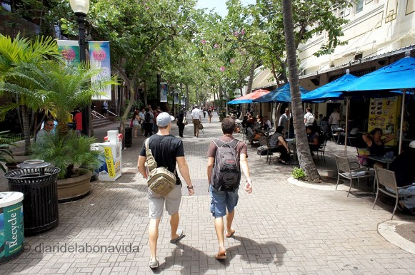 Tornem a Kalakaua Avenue, la zona més fashion, turística i comercial. Voltem de nou per la seva platja principal, Waikiki, i tot i la fortíssima calor, no ens banyem. Anem carregats amb la motxil·la i les seves platges són plenes de gent. Així que ja tindrem oportunitat de fer-ho en llocs més tranquils…