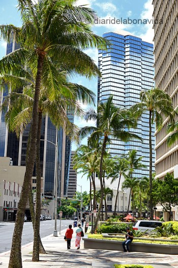 Continuem la nostra passejada fins el Downtown, on trobem la Honolulu més americana, la dels alts edificis d’oficines, els centres comercials i els restaurants. Allà fem especial atenció a Ford St., un dels carrers més animats, ple de joves i cafeteries, ja que la universitat de Hawaii és molt a prop d’allà.