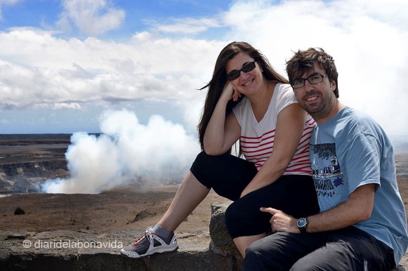 Però clar, no volem anar directament, sinó que aprofitem el trajecte fent diverses aturades per gaudir del que Hawaii ens ofereix. El primer que fem és tornar al Hawai’i Volcanoes National Park. Quan compres una entrada per algun Parc Nacional als Estats Units, normalment et dóna dret a visitar-lo durant una setmana, i ens ve de gust tornar a veure l’impressionant cràter Halema’uma’u del volcà KīlaueaDe dia no té un aire tan místic com a la nit, però és magnífic.
