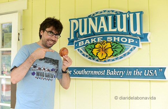 Continuem la ruta com ens agrada a nosaltres, improvisant i aturant-nos allà on alguna cosa ens crida l’atenció. I això és el que ens passa al poble de Na’alehu. No té res d’especial, però trobem el que diuen és el forn de pa més al sud dels Estats Units, la Punalu’u Bake Shop. Només l’otorgació d’aquest curiós títol ja és suficient per voler fer una visita. I no està gens malament! Aprofitem per dinar (fan alguns plats calents) a les taules que tenen en una gran terrassa exterior.