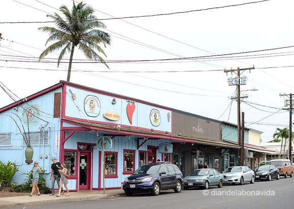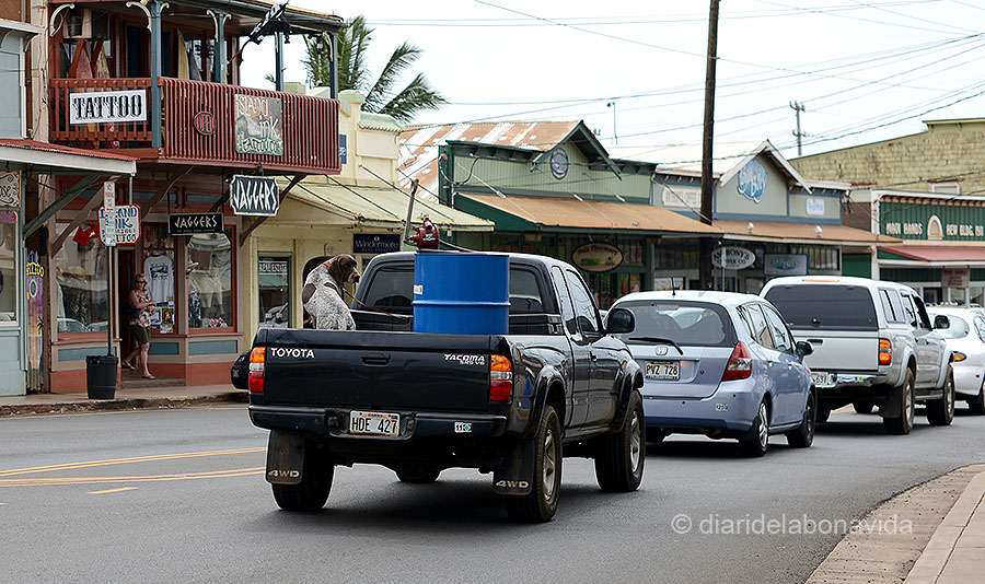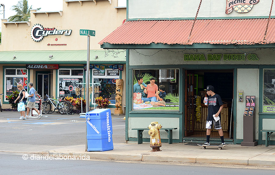 Al cap de 40 minuts de sortir de Hilo, ja som a Maui, a l’aeroport de Kahului. Anem a recollir el cotxe de lloguer a la caseta de Dollar però quan estem fent cua, ens adonem que els cotxes no els entreguen allà mateix, sinó que has de desplaçar-te amb un bus o shuttle que et porta fins on hi ha tots els cotxes a entregar. Aquesta vegada ens donen un Ford Fiesta de color blanc. Doncs som-hi! Un cop motoritzats, ens acostem fins a Paia, un poble amb molt d’encant a 15 minuts de l’aeroport. És ple de botigues i restaurants amb molt d’ambient, una mica hippie. Després de fer una volteta, com que és casi l’hora de dinar, entrem al Cafe Des Amis, a l’avinguda principal -Baldwin Avenue-, i dinem super bé.
