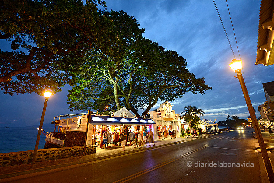 Continuem la nostra visita pel poble. És força turístic, però sense agoviar en excés, i estem encantats per haver triat aquest lloc com a final de la nostra ruta. Quan és l’hora de sopar, pugem a la terrasseta del Cheeseburger Paradise, on toquen música en directe, per menjar el plat estrella: una hamburguesa amb formatge… Però ja tenim la vista posada en fer un últim sopar a un dels millors restaurants del poble i de tot Maui. Ummm! Quina gana!