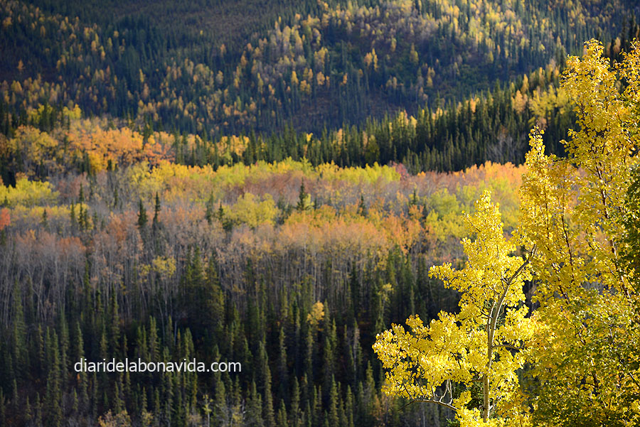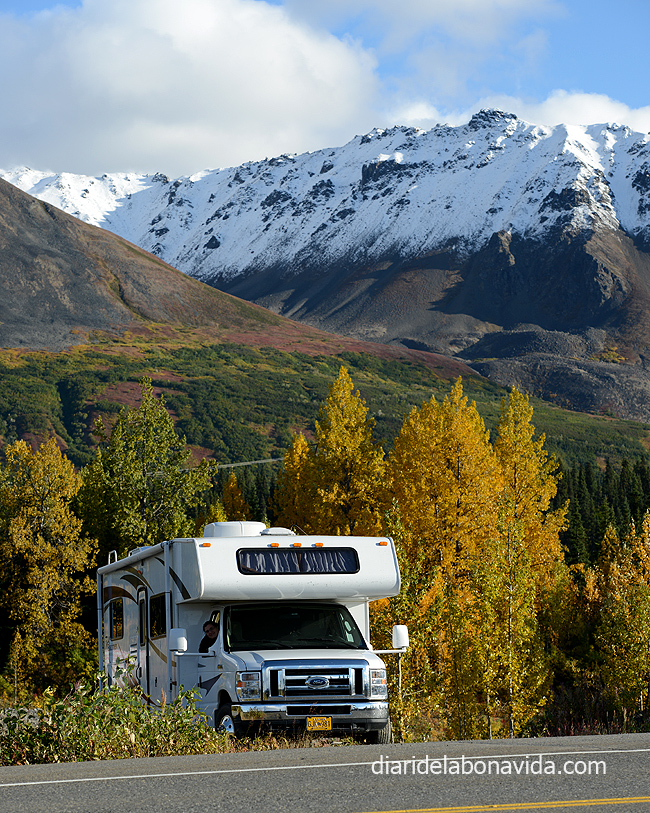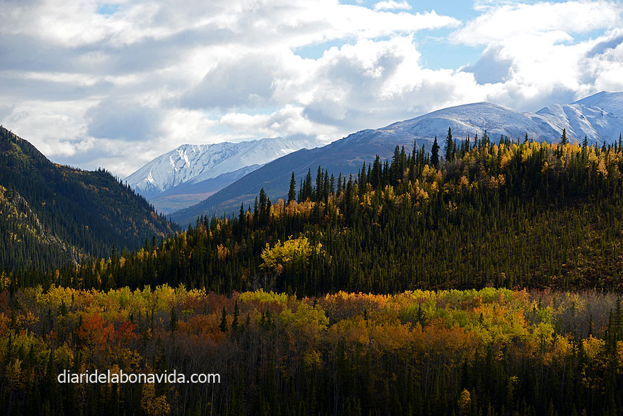Parece que los magníficos paisajes no nos abandonan. Después de Denali National Park, nos dirigimos al Wrangell – St.Elias National Park Reserve. La carretera continúa rodeada de montañas y árboles de potentes colores.