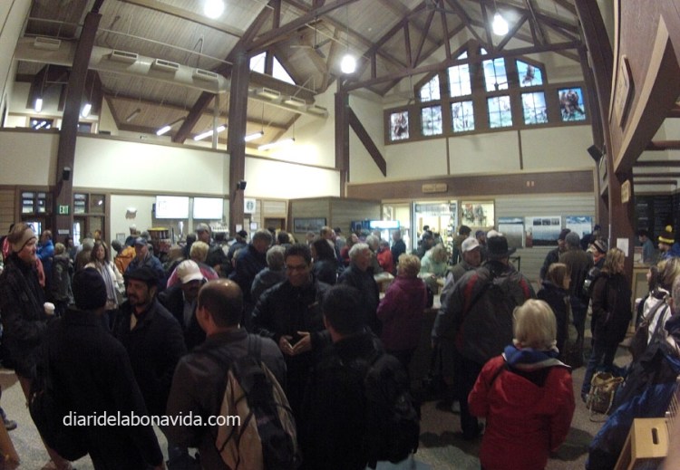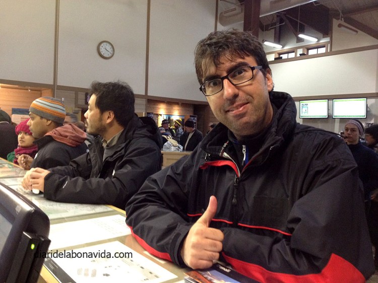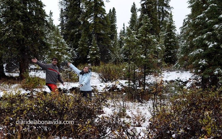 Empezamos a notar el cansancio. Durante el día no paramos, y no dormimos mucho, que digamos! Tras el espectáculo visual de ayer, y de haber dormido menos de 7 horas, nos levantamos y emprendemos la marcha dirección Fairbanks de nuevo. Empezamos a bajar hacia el sur. Por el camino paramos en el rocambolesco pueblo de North Pole (sí, sí, alguien tuvo la brillante idea de bautizar un pueblo con el nombre de Polo Norte). Y adivináis cuál es la gran atracción turística del lugar. Pues, aquí representa que el Papa Noel tiene su oficina y recibe las cartas de todos los niños del mundo (no sabemos cuántas de estas oficinas debe tener repartidas por el planeta…). Hay una super tienda donde se puede encontrar todo tipo de artículos relacionados con la Navidad. Muy freaky todo! Y hoy, comida para tres; nosotros dos y un Papa Noel de más de 10 metros que nos acompaña!