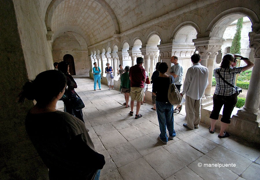 Continuem la ruta, amb la panxa plena, i ens apropem fins a l’Abadia de Notre-Dame de Sénanque, molt a prop de Gordes. Quan la divisem, ja hi ha alguna cosa que ens atrau, segurament l’entorn on va ser construïda, al segle XII. Uns cuidats camps de l’omnipresent lavanda ens acompanyen fins a les seves portes. L’única manera de visitar el seu interior, és a través de visites guiades, i aprofitant que està a punt de començar una, ens apuntem, per 7 euros cadascun. Tots els tours són únicament en francès, però la nostra guia vocalitza molt bé i parla lentament, així que és una delícia escoltar informació d’aquest monestir cistercenc i veure per dins una abadia amb tants anys d’història.