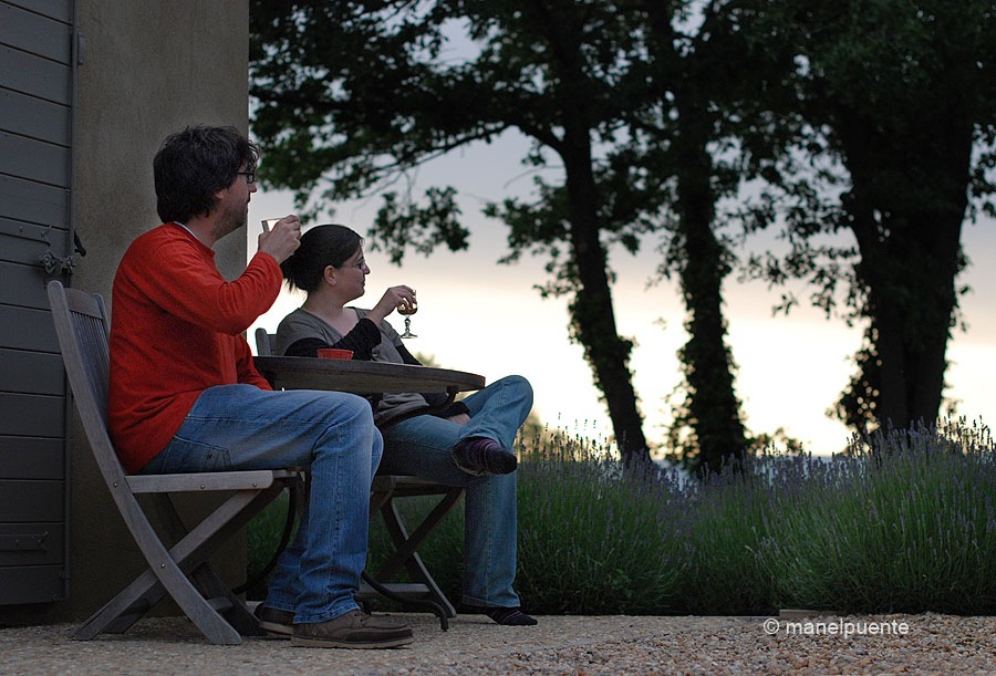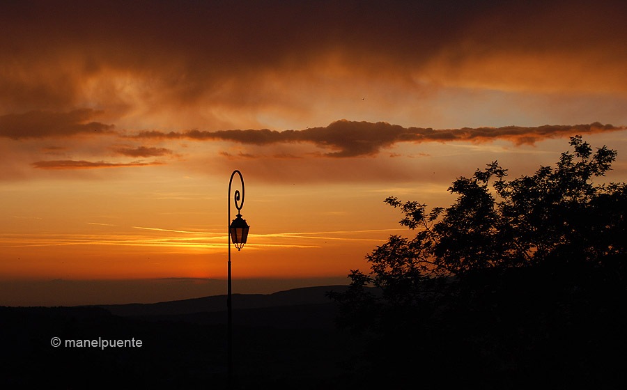 Ens recomanen sopar al restaurant d’uns amics, i tot i que nosaltres portàvem la bona referència d’un altre, ens deixem aconsellar. Es diu “Un p’tit coin de cuisine”, i està al centre del poble. És un lloc encantador. El cambrer que ens atén és super-simpàtic, i el menjar és fantàstic. Uf! Què més podem desitjar! Doncs una meravellosa posta de sol, la millor de la nostra escapada d’aquests dies. De fet no m’hi puc estar, i abandono a la Cristina durant uns moments per fotografiar el meravellós cel que La Provence ens està oferint. Ja no puc comptar quantes vegades he fotografiat el capvespre, però sempre m’emociona fins a punts insospitats trobar-me en solitud davant d’aquest espectacle de la natura…