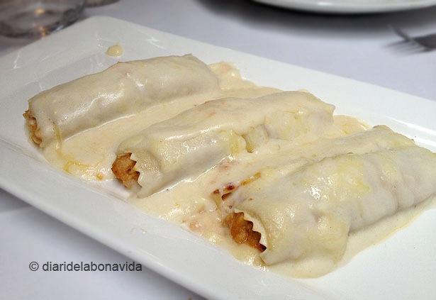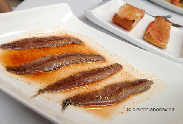 Raviolis de gambes farcits de cepsTot i la bona presentació, a l’arròs negre li faltava «força»Les anxoves eren una mica salades pel nostre gust…