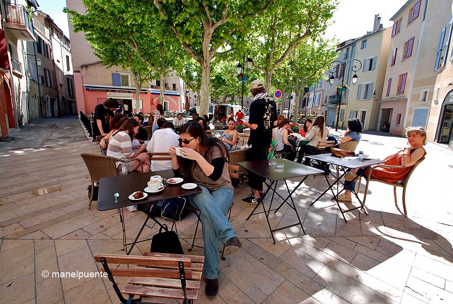 La Porte Soubeyran ens condueix a la ciutat antiga de ManosqueCarrers estrets condueixen al centre de la vilaA primera hora del matí el poble està molt tranquilEsmorzem a la Place Marcel Pagnol