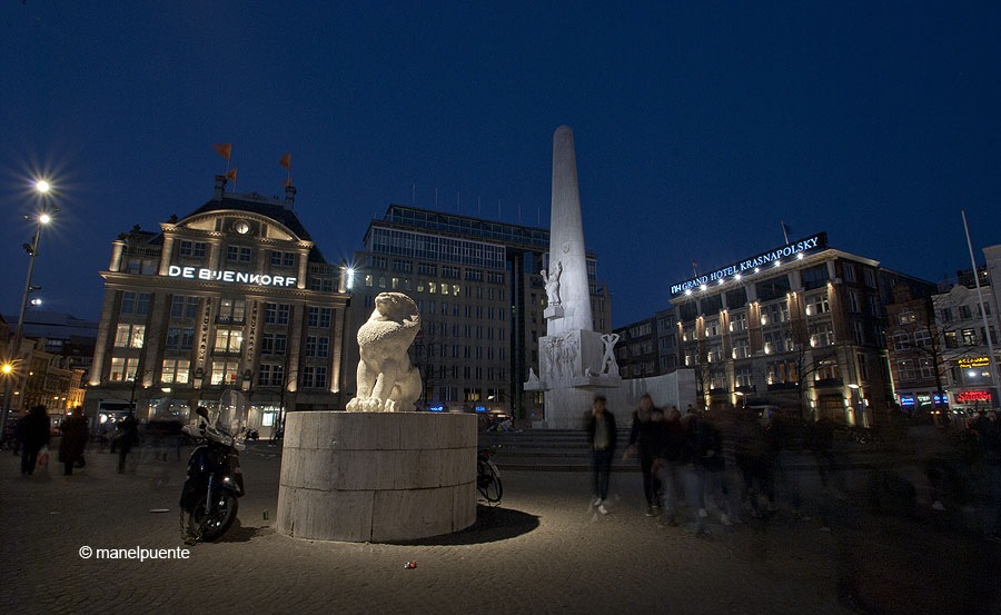 -La Plaça Dam, punt de reunió de moltíssima gent. Destaquen el Palau Reial i l’Obelisc en homenatge als holandesos morts pel país.