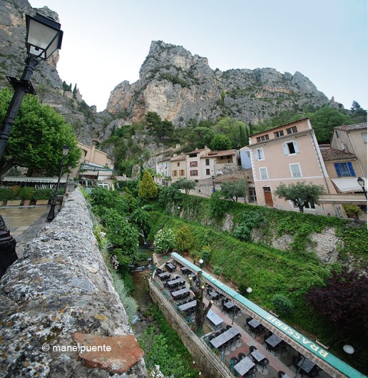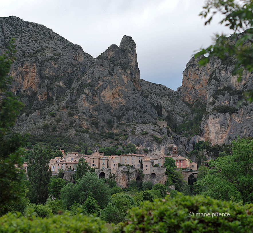 Continuem i una mica de pluja ens torna a acompanyar. Arribem fins al bonic poblet de Moustiers-Sainte-Marie, situat entre muntanyes, amb un riu que el travessa amb petites cascades entre les cases. Moustiers està inclòs a la llista francesa dels Plus beaux villages de Frances, i passejant pels seus carrerons entenem el per què.