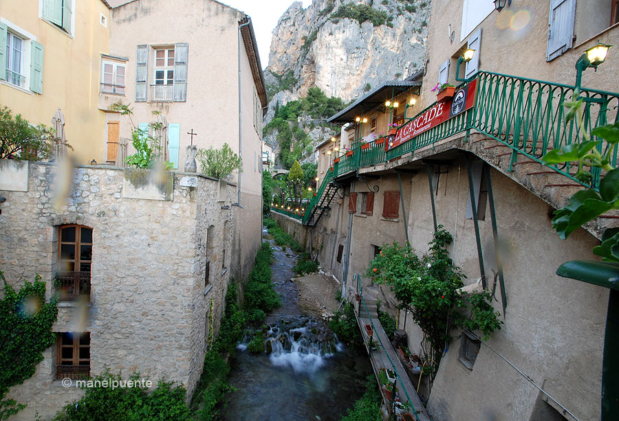 El Poble de Moustiers-Sainte-Marie està situat entre les muntanyes del Grand Canyon du VerdonAmb aquestes vistes es lleven cada dia els habitants de MoustiersEl riu i petites cascades travessen el seu casc urbà, oferint encara una imatge més maca del pobleEl poble permet una petita passejada per recórrer els seus carrersEren més de les 20h, i la nostra visita provocava trobar-nos poquíssima gent. Genial !!L’esglèsia parroquial és una petita joiaCarrers empedrats acompanyen al visitant