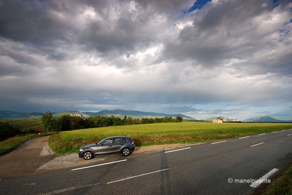 El vespre ens sorprèn en aquesta zona de La Provence i és quan més gaudim del paisatge. La pluja ja ha parat, però ens alegrem molt que hagi plogut. És una manera de millorar aquest paisatge, que és espectacular! Els camps tenen una capa de gotes que fan que els colors siguin els més vius que hem vist des que vam arribar.
