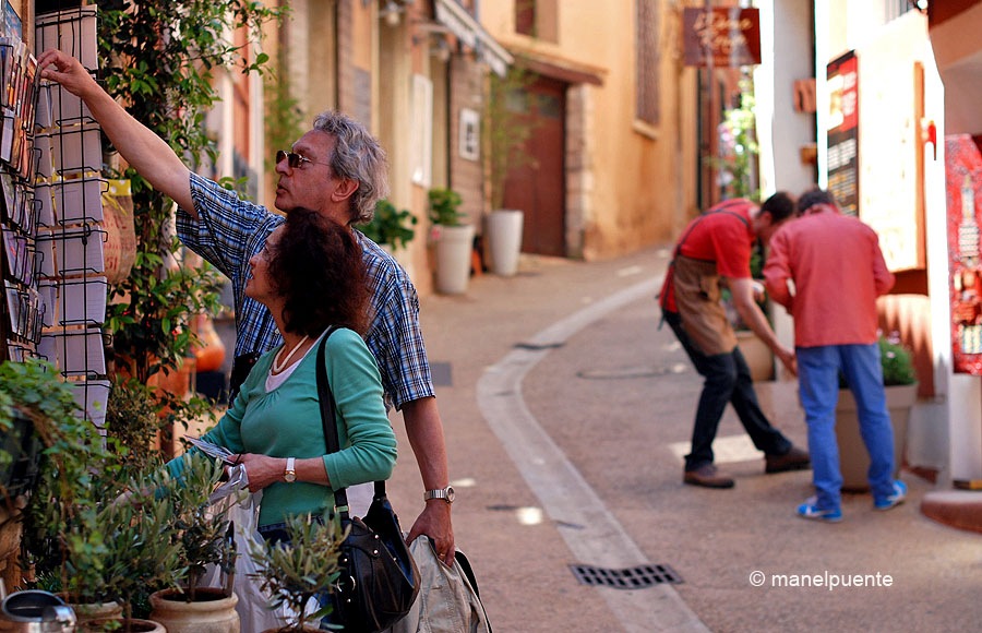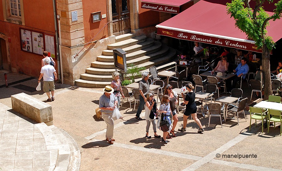 Els penya-segats d’ocre són característics d’aquesta zonaTot i ser un poble molt turístic, ens vam trobar un Roussillon força tranquilBotiguetes i restaurants omplien els carrers