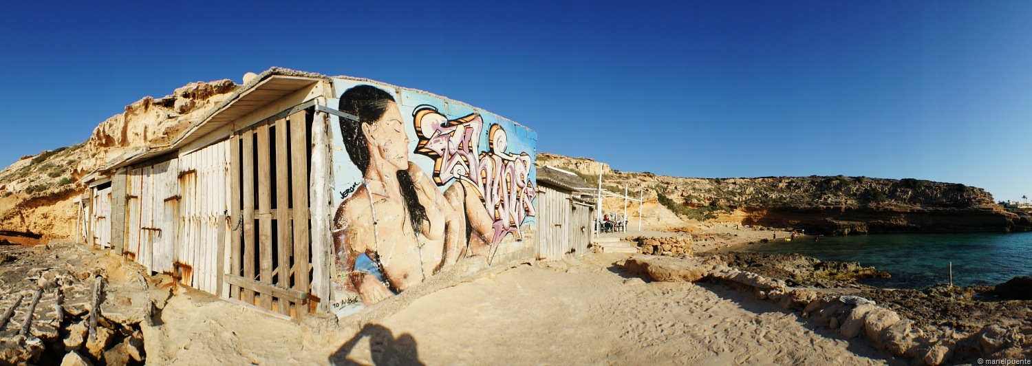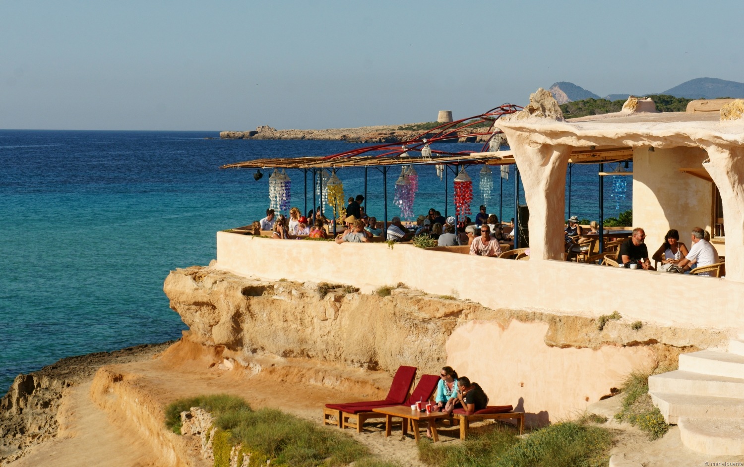 La nostra ruta per l’illa comença per l’oest. Cala Comte és una bona opció per prendre un bany. El Sunset Ashram Beach Bar, és el xiringuito que presideix la cala. La seva terrassa, amb vistes al mar, és un bon lloc on prendre una copa mirant l’infinit i escoltant el que el DJ ens vulgui “punxar”.