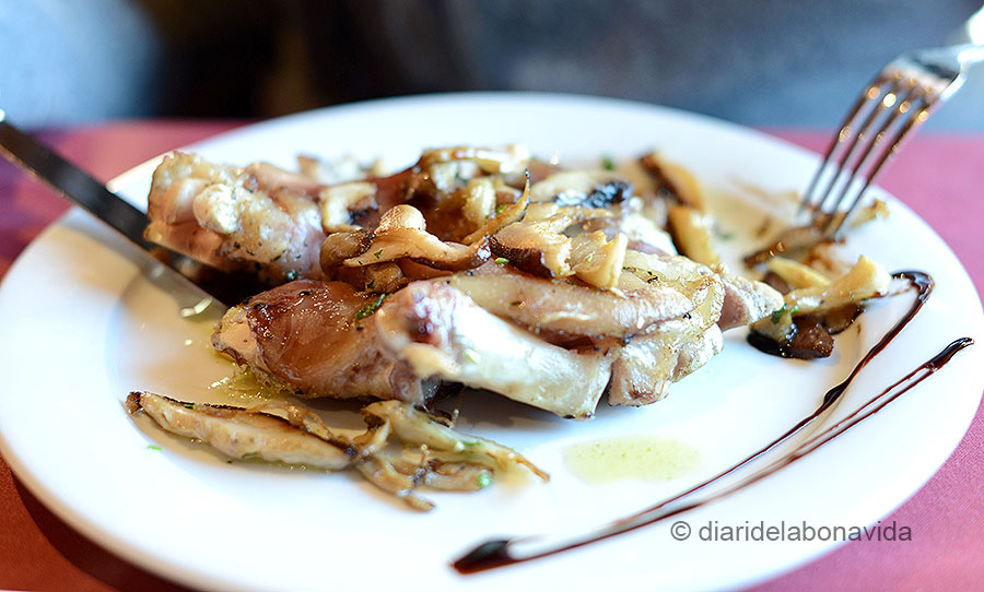 Peus de porc confitats amb bolets